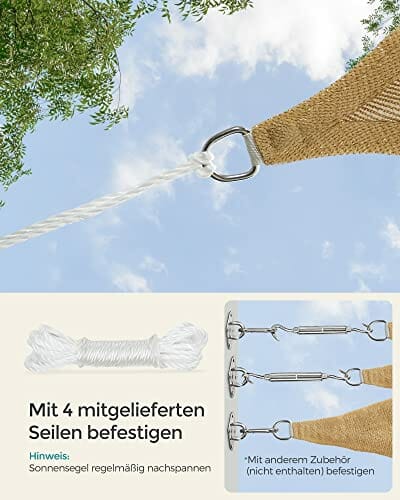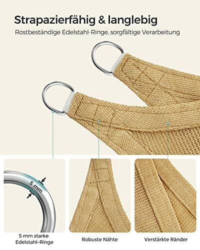 - STABIL, KEINE STOFFDURCH[Zubehör & Montage] 4 jeweils 2 m lange Seile werden mitgeliefert. Es wird empfohlen, dass der Abstand zwischen dem Befestigungspunkt und dem Edelstahl-Ring des Sonnensegels mindestens 30 cm beträgt. Spannen Sie das Sonnensegel regelmäßig nachHÄNGER: Der konkave (bogenförmige) Schnitt bietet mehr Stabilität beim Sonnensegel, und verleiht dem Segel dauerhafte Spannung, sodass es nicht nach innen durchhängt