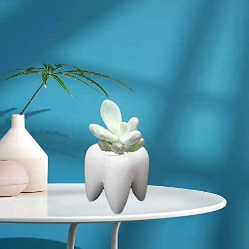 🌱 Ten uroczy: 🌱 Ten uroczy wazon na zęby jest wykonany z ceramiki wypalanej w wysokiej temperaturze, odporny na korozję, niełatwy do odkształcenia, trwały, gładka powierzchnia, kreatywny design. Ta doniczka nadaje się bardzo dobrze do tekstyliów domowych, sukulentów itd.