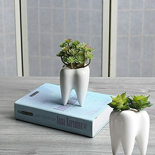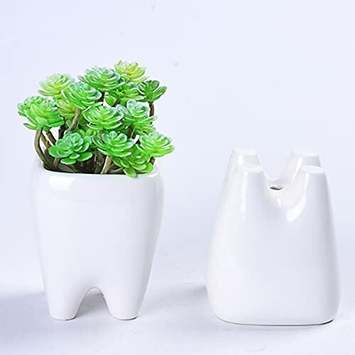 2 sztuki ceramicznych doniczek na kwiaty z zębami, wróżka, donica na rośliny, na sukulenty, pudełka okienne, kreatywny uchwyt na długopisy do domu, biura, na biurko, urodziny, wesele