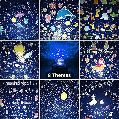 • 8 grup filmów tematycznych – lampka nocna z projektorem jest wyposażona w 8 grup opcjonalnych filmów projekcyjnych: świat oceanu, dzika przyroda, konstelacja planetarna, miłość, wszystkiego najlepszego z okazji urodzin, Wesołych Świąt, Halloween. Projektor gwiazd zapewnia szeroką gamę prawdziwych, romantycznych efektów. Sceny można zmieniać w dowolnym momencie w zależności od nastroju i zapotrzebowania.