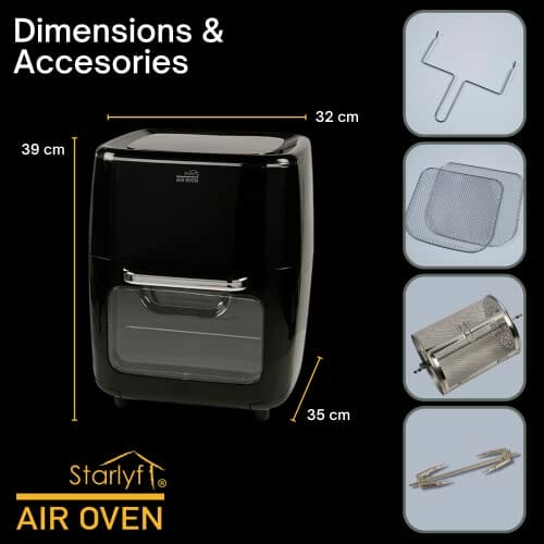 Starlyf Heißluftfritteuse Air Oven XXL, 1700,00 W, 12 Liter Fritteuse mit 10 Programmen, Rotisserie-Funktion, Drehspieß