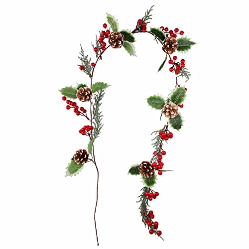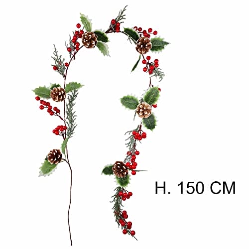 STEFANAZZI wieniec ostrokrzewu i czerwone jagody 150cm realistyczne ozdoby świąteczne na drzwi kominek wejście dom centralny wieniec Boże Narodzenie