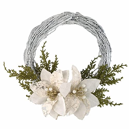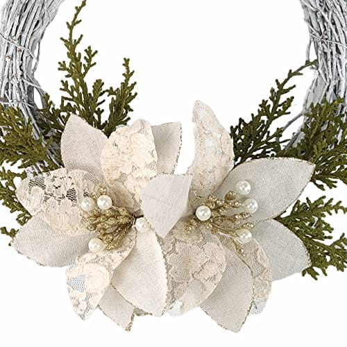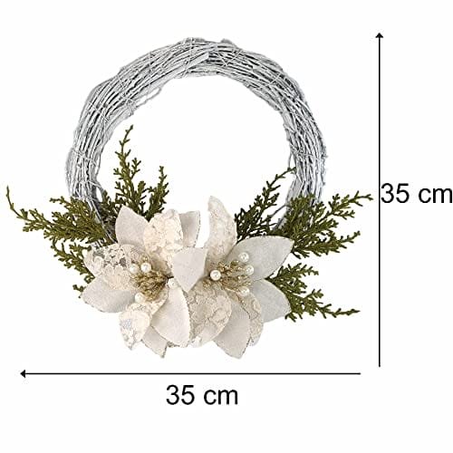 STEFANAZZI Wieniec Świąteczny Made in Italy 35cm z różami Boże Narodzenie bawełna koronki sosna na drzwi ozdoby kominkowe wejście do domu