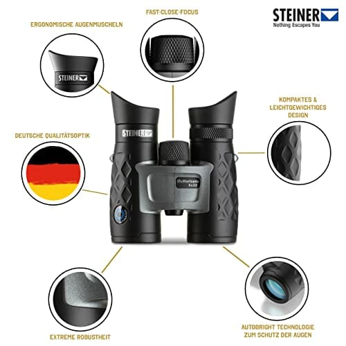 Steiner BluHorizons 8 x 32 lornetka – wyjątkowa technologia soczewek, ochrona oczu, kompaktowa, lekka – idealna na urlop w słonecznych krajach, aktywności na świeżym powietrzu i do uprawiania sportu