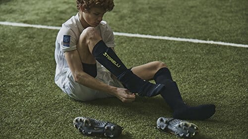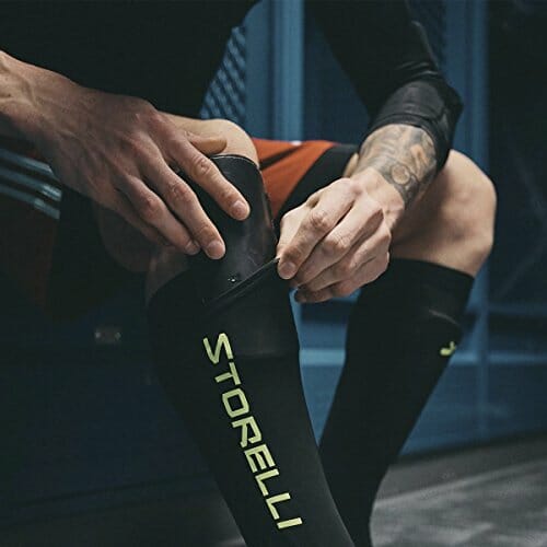 • Pasuje do większości osłon piszczeli (nie dołączonych): W zestawie z 2 ochraniaczami na nogi (1 para) z wbudowanymi kieszeniami na golenie, które utrzymują osłony na miejscu, eliminując rozpraszanie uwagi ciągłej ręcznej regulacji.