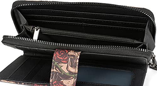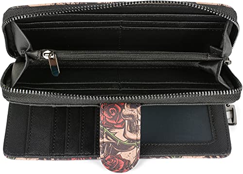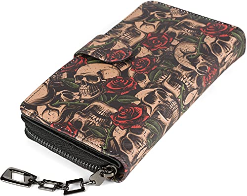 styleBREAKER Damski portfel z nadrukiem czaszki róż zamek
