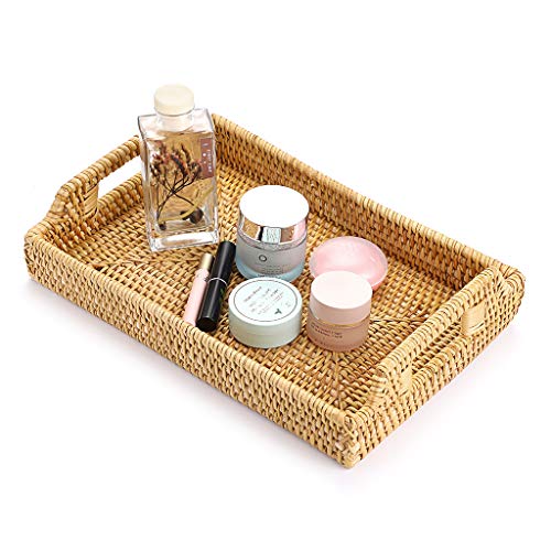 ✅ Ta taca do: Ta taca do przechowywania wykonana z rattanu jest lekka, trwała i przyjazna dla środowiska. Solidna podstawa zapewnia wytrzymałą strukturę, dzięki czemu taca zyskuje wytrzymałość i trwałość do wielofunkcyjnego użytku
