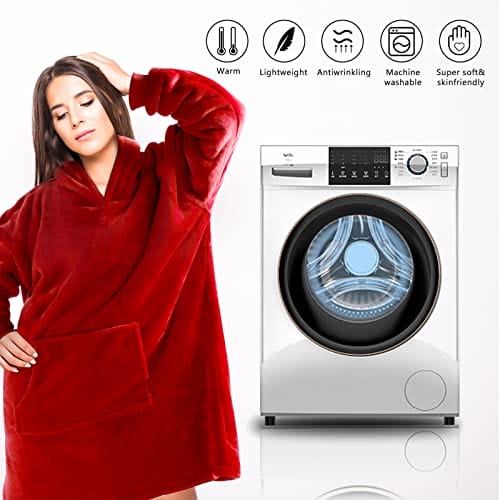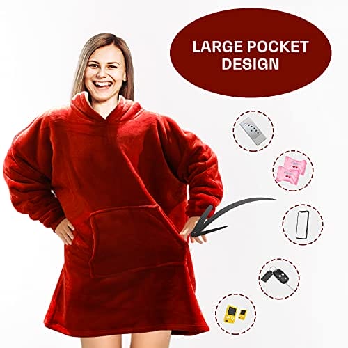 sunyana Koc z kapturem – Przytulny sweter damski w dużym rozmiarze, idealny dla kobiet – Flanell-Sherpa materiał, wielofunkcyjny, łatwy w pielęgnacji – Weinrot
