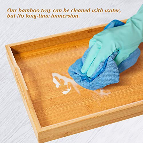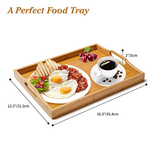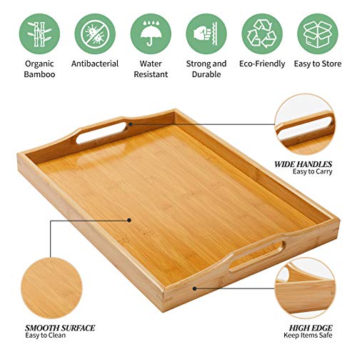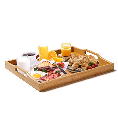 SUPERBE Duża bambusowa taca do serwowania z uchwytami, drewniana taca na śniadanie, herbatę, stolik kawowy, dekoracyjna taca lokaja (naturalna, 1)