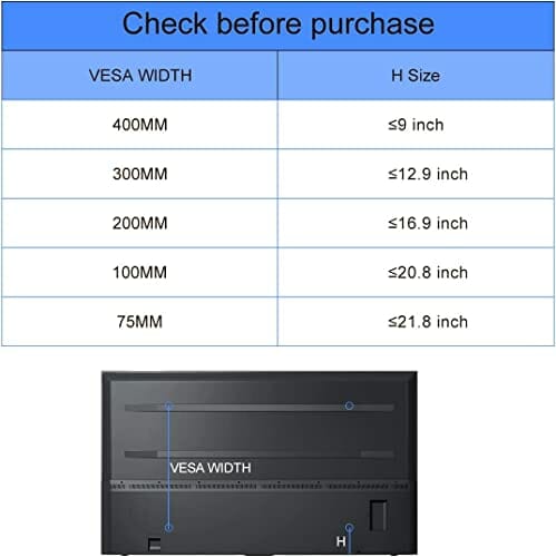 Kompatybilność – stojaki: Kompatybilność – stojaki na telewizor pomieszczą większość telewizorów 56-165.1 cm i wytrzymują ciężar do 50 kg. Kompatybilny z VESA od 75 x 75 mm do 800 x 400 mm.