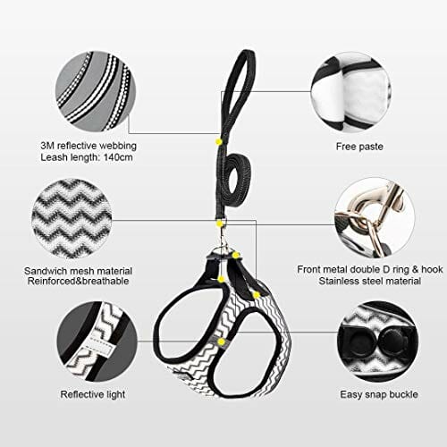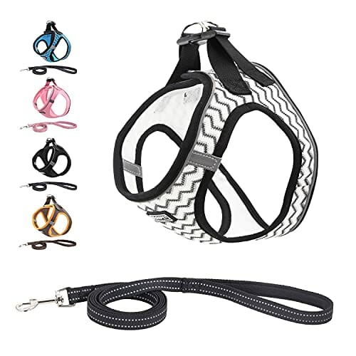 Suredoo Odblaskowe szelki i smycz z miękkiej siatki, bez ciągnięcia, oddychająca wyściełana smycz z kamizelką, komfortowy trening chodzenia dla małych szczeniąt / psów / kotów (XXS, biały)