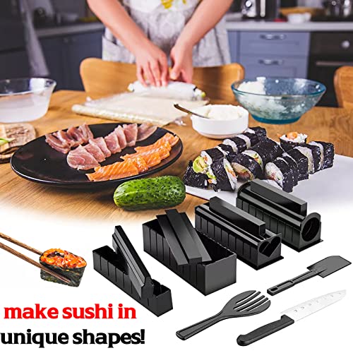 Domowy zestaw do robienia sushi, zestaw 11 sztuk z 8 rolkami do ryżu, widelcem, szpatułką, nożem – łatwy do czyszczenia i użytkowania, można myć w zmywarce do kuchni