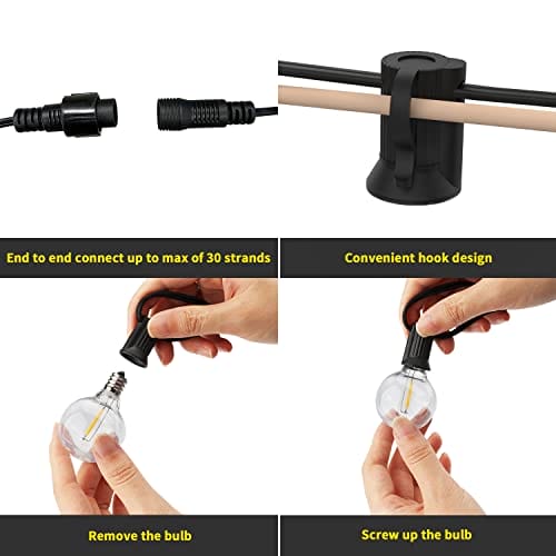 ✅ Łatwa instalacja –: Łatwa instalacja – każda żarówka Svater G40 ma klips z boku. Dzięki temu można je łatwo przymocować do drzew, płotów listewkowych lub balustrady schodów. Wystarczy podłączyć i grać, jeśli potrzebujesz kilku stojaków.