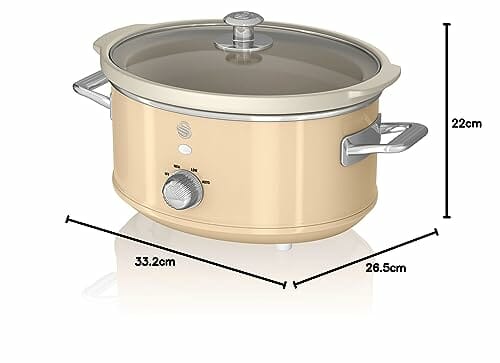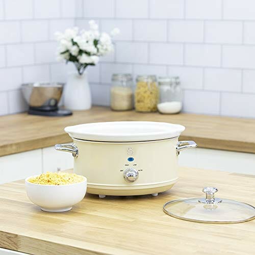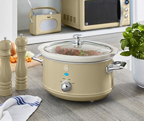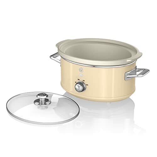 Swan Retro SF17021CNEU Wolny garnek 3,5L Pojemnik Wyjmowany, Nieprzywierający Ceramika Wolna PFOA i PTFE, 3 Poziomy Temperatura, Pokrywka Szkło, Powolny Cooker, Wzór Vintage, Krem, 200W