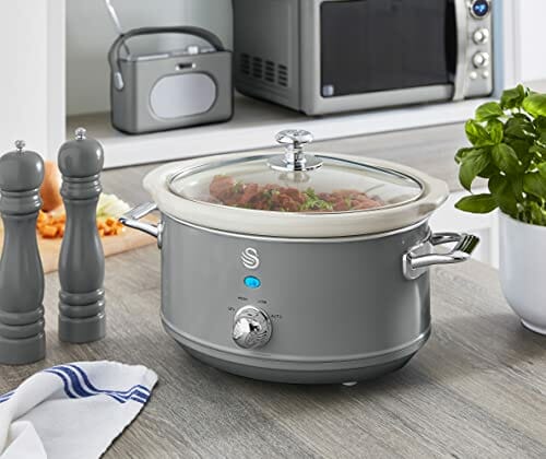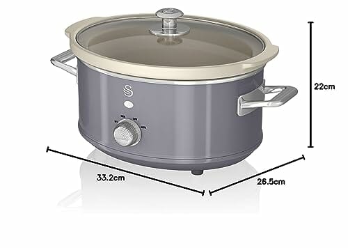 Swan Retro SF17021GRNEU Wolnostojący garnek 3,5 l Wymienny pojemnik, Non-stick Darmowe ceramiczne PFOA i PTFE, 3 poziomy Temperatura, Szklana pokrywa, Slow Cooker, Vintage Design, Szary, 200W