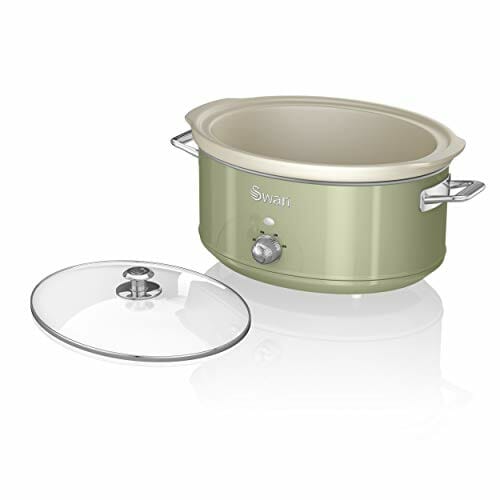 Swan Retro SF17031GNEU Wolna kuchenka, wyjmowany pojemnik do gotowania, 6,5 litra, powolny kucharz, nieprzywierająca ceramika bez PFOA i PTFE, 3 poziomy temperatury, Vintage Design, Zielony, 320W