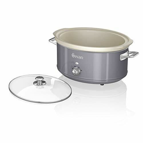 Swan Retro SF17031GRNEU Wolna kuchenka, wyjmowany pojemnik do gotowania, 6,5 litra, powolny kucharz, nieprzywierająca ceramika bez PFOA i PTFE, 3 poziomy temperatury, Vintage Design, Szary, 320W