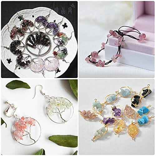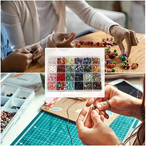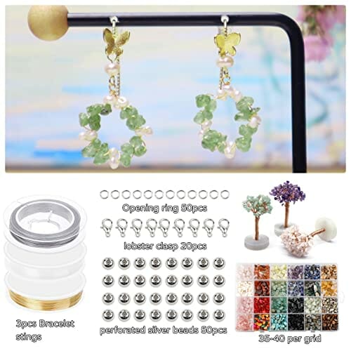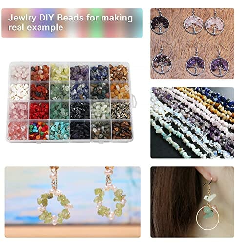 ✅ Zestaw do majsterkowania: Zestaw do majsterkowania z perłami szlachetnymi – opakowanie zawiera koraliki w 24 różnych kolorach naturalnych, koraliki z odłamków kamieni szlachetnych, ok. 15 g/szt. 1 plastikowy pojemnik, 2 kryształowe żyłki, 1 elastyczna żyłka zasilająca, 50 srebrnych otwartych pierścieni sprężynujących, 50 sre