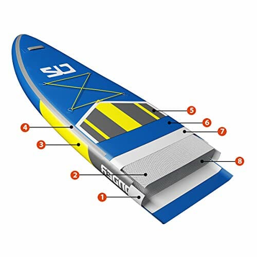 • Wytrzymały: z wysokiej jakości PCW, z technologią Drop Stitch (12800 ściegów/m²), dokładne wykończenie, ciśnienie powietrza jest równomiernie rozprowadzane na wierzchu i spodzie, dzięki czemu powstaje stabilna, antypoślizgowa powierzchnia. (nadaje się do PSI :12 ~ 15)