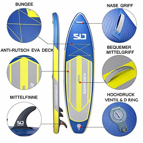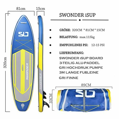 • Co za solidną deskę! : Długość deski wynosi 320 cm, szerokość 81 cm i grubość 15 cm, maks. obciążenie wynosi 116 kg/125 kg. W połączeniu z antypoślizgową podkładką z tworzywa EVA jest łatwa do wyważenia i świetnie nadaje się na wędrówki po wodzie, fitness, wędkowanie, jogę itp.