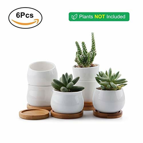 • Wysokiej jakości materiały: ręcznie wykonane garnki na sukulenty z wysokiej jakości ceramiki, lekkie i trwałe, dobra jakość. Podstawki z litego drewna bambusowego są dostarczane razem z nimi.