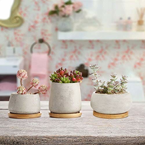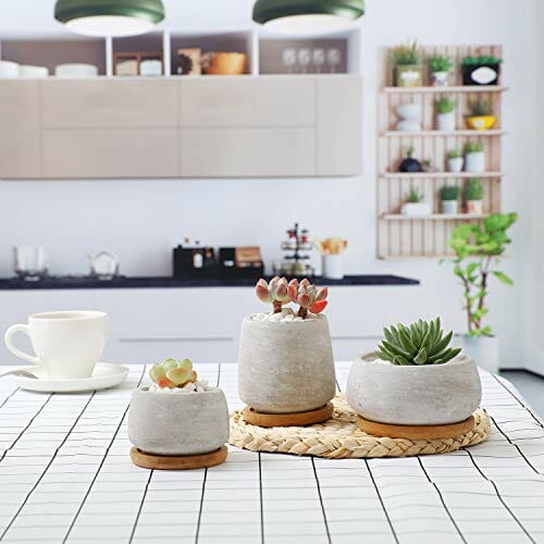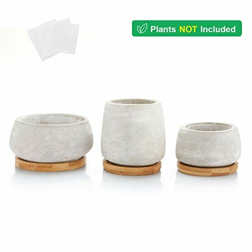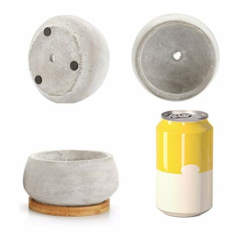 Wysokiej jakości materiały:: Wysokiej jakości materiały: ręcznie robiona doniczka na sekkulenty z wysokiej jakości materiału betonowego. Lekki i trwały. Dobra jakość gwarantowana. Podkładki z litego drewna są dostarczane razem.