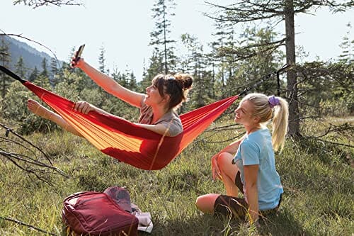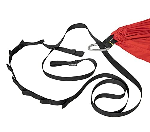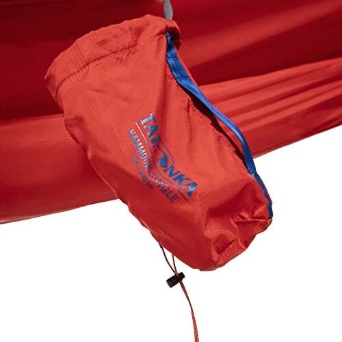 Tatonka Hammock Single – super lekki hamak outdoorowy dla 1 osoby – łącznie z zestawem do mocowania (2 x pasy / 2 x karabińczyki) – obciążenie do 100 kg – 290 x 150 cm – czerwony