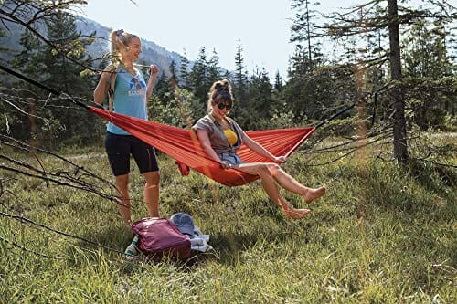 Tatonka Hammock Single – super lekki hamak outdoorowy dla 1 osoby – łącznie z zestawem do mocowania (2 x pasy / 2 x karabińczyki) – obciążenie do 100