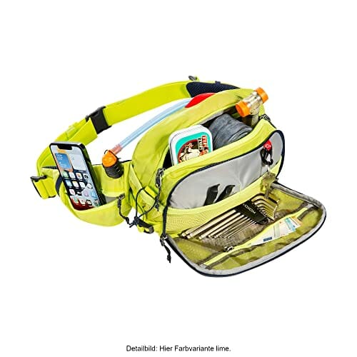 ✅ Torba na biodra/pasek: Torba na biodra/pasek dla rowerzystów górskich o pojemności 5 l i 2 kieszenie zapinane na zamek błyskawiczny na skrzydłach biodrowych. Liczne przegródki i dużo miejsca do przechowywania narzędzi (wąż, dźwignia opon, pompka itd. ), żywność (napoje, batony energetyczne itp.) i innego sprzętu (telefon