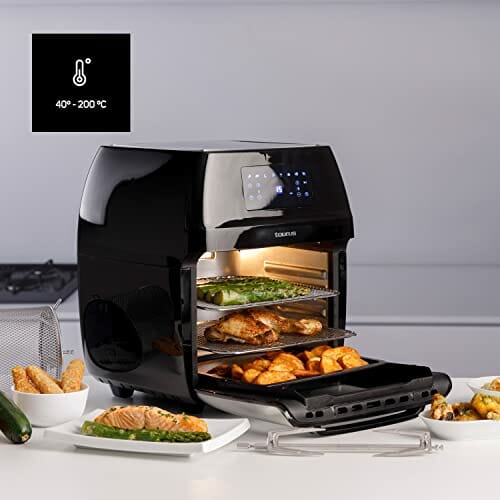 Taurus Air Fry Digital Grill, ölfreie Fritteuse und Backofen, Luftfritteuse, 1700 W, 12 l, programmierbar, 24 Stunden, programmierbar, 24 Stunden, 8 Programme, transparente Tür, leicht zu reinigen.