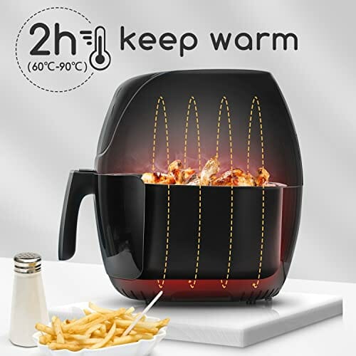 - 【Großes Fassungsvermögen XXL】Mit einem inneren Fassungsvermögen von 6 Litern und einem äußeren Fassungsvermögen von 7,7 Litern kann die Heißluftfritteuse dank 1800 W Leistung in kürzester Zeit für 4-6 Personen kochen. Sie eignet sich für Familienfeiern, Reisen und Picknicks.