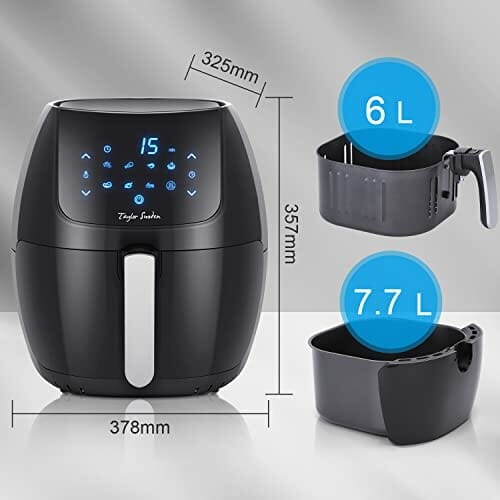 Taylor Swoden Sunbeam – Heißluftfritteuse XXL, 7L Airfryer, 1800 W Friteuse ohne Öl für 4-6 Personen, digitaler LED Touchscreen, 8 Programme, automatische Abschaltung