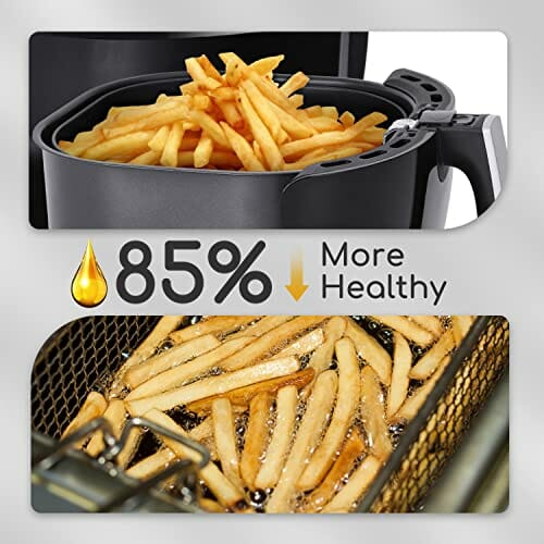 - 【Gesundes Essen】Die innovative Luftzirkulationsfunktion benötigt nur einen Esslöffel Öl oder weniger, was es zur gesündesten Alternative gegegenüber dem Frittieren macht. Das bedeutet, dass Sie 80 % weniger Öl verbrauchen und trotzdem alle Ihre Lieblingsgerichte mit dem besten Geschmack genießen können.