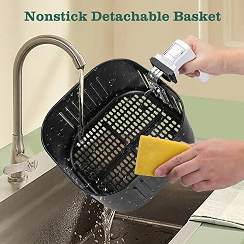 - 【Leicht zu reinigen】Der Innenkorb zum ölfreien Braten ist herausnehmbar und antihaftbeschichtet, nach dem Gebrauch können Sie die Lebensmittel leicht aus dem Innenkorb herausschütten und in der Spülmaschine waschen.