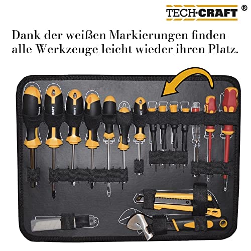 • Workstatt-to-go: obszerna walizka narzędziowa firmy TECH-CRAFT zawiera wszystko, czego potrzebujesz jako majsterkowicz, do wykonywania prac domowych i można ją łatwo i wygodnie przenosić z miejsca na miejsce.