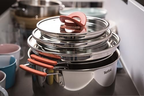 Zestaw Tefal Opti Space został zaprojektowany tak, aby zajmował jak najmniej miejsca w kuchni. Naczynia można układać wewnątrz siebie, co pozwala zaoszczędzić miejsce w szafkach i szufladach. Dodatkowo, pokrywki naczyń są kompatybilne między sobą, co jeszcze bardziej ułatwia przechowywanie zestawu.