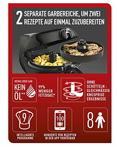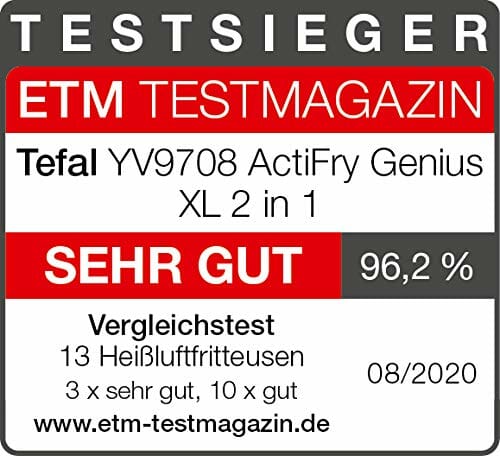 Napisz pierwszą opinię o „Tefal YV9708 ActiFry Genius XL 2in1 Heißluftfritteuse mit Rührarm | Testsieger | 1,7 kg für 8 Personen | 9 automatische Menüs | 2 Speisen gleichzeitig | gesunde Friteuse ohne Öl, Schwarz”