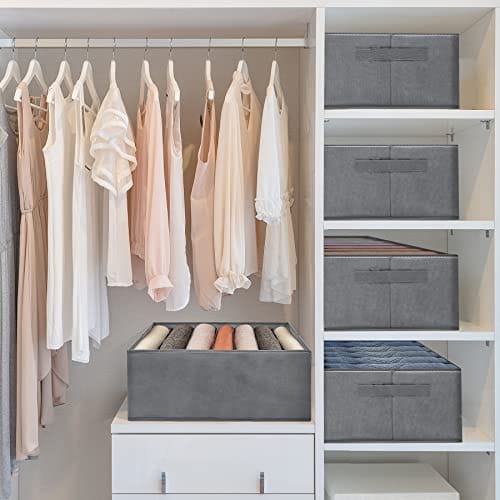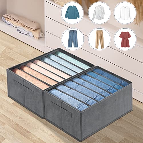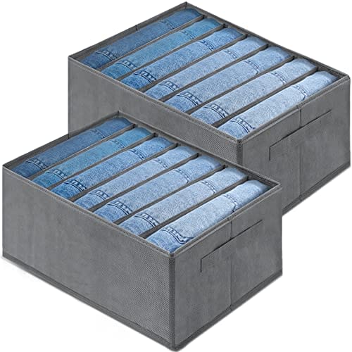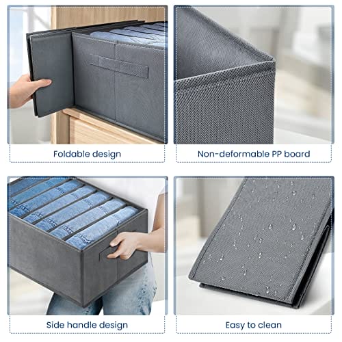 • Organizer do szafy z uchwytem i składany: zaprojektowany z uchwytem z boku, pudełko do przechowywania dżinsów można łatwo wyciągnąć, aby znaleźć ubrania. W przypadku nieużywania organizer można szybko złożyć na płasko, oszczędzając miejsce.