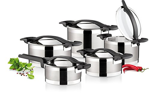 – Zestaw zawiera garnki o różnych pojemnościach, umożliwiających gotowanie różnorodnych potraw.