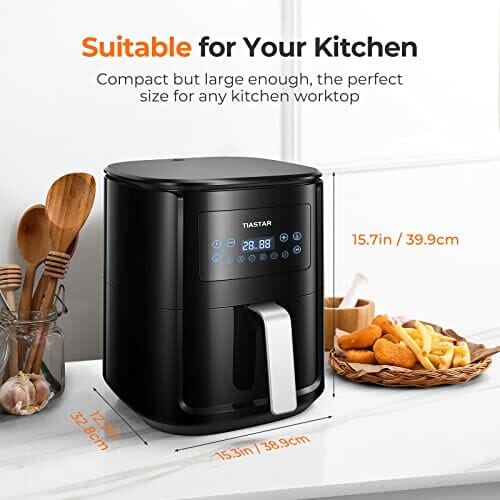 Napisz pierwszą opinię o „Tiastar Heißluftfritteuse 5,5L mit Digitalem LED-Touchscreen, Airfryer XXL mit einstellbare Temperatur und Timer, Heissluftfriteuse mit Antihaft Frittierkorb,1700W Schwarz”