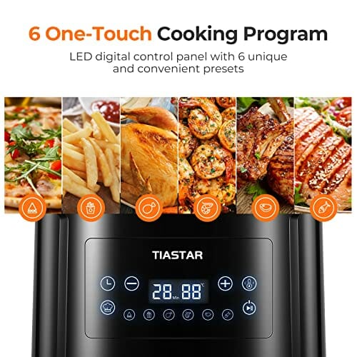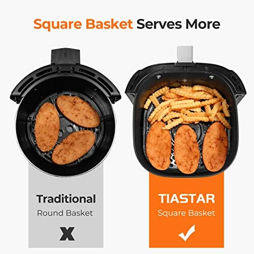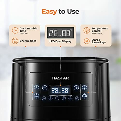 • Gesünderes Kochen: Die TIASTAR Heißluftfritteuse kommt ohne Fett und Öl aus. Durch heiße Luft können knusprige Mahlzeiten wie Pommes und Hähnchenflügel schnell und einfach zubereitet werden, hat es 85% weniger Fett als herkömmliche Frittiermethoden,sondern liefern die gleichen köstlich knusprigen Geschmack von frittierten Lebensmitteln,Genießen Sie das schuldfreie Frittieren mit Ihrer Familie oder Ihren Freunden!