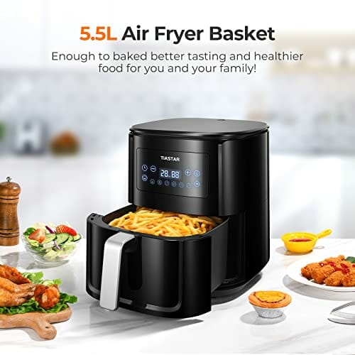 Tiastar Heißluftfritteuse 5,5L mit Digitalem LED-Touchscreen, Airfryer XXL mit einstellbare Temperatur und Timer, Heissluftfriteuse mit Antihaft Frittierkorb,1700W Schwarz