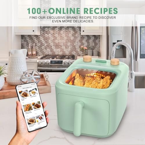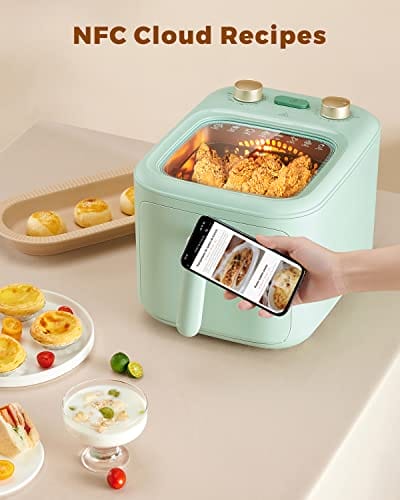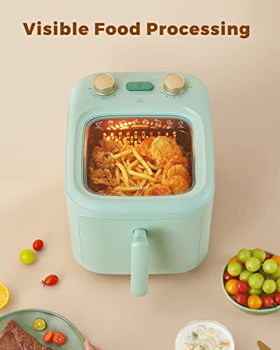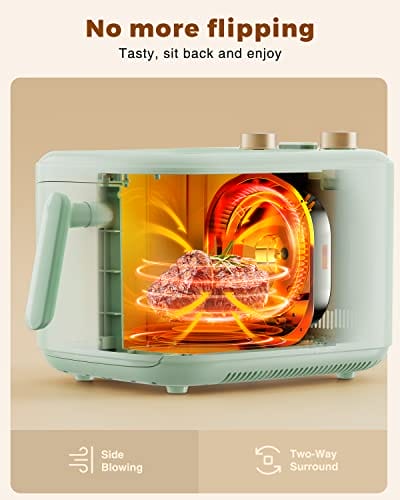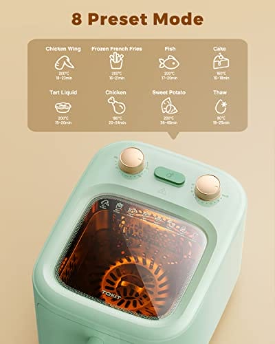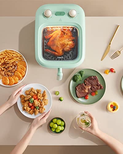 TOKIT F1 Panoramablick Heißluftfritteuse kein Umdrehen erforderlich mit schneller Luftzirkulation 60 Min. Timer 5L-Grün