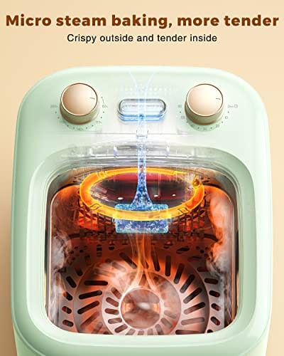 - NICHT NUR LUFT, SONDERN AUCH DAMPF – Die TOKIT Luftfritteuse verfügt über einen kleinen eingebauten Dampftank, der mit Mikrowasser gefüllt werden kann, während die Luftfritteuse in Betrieb ist. Das macht Ihr Essen zarter.