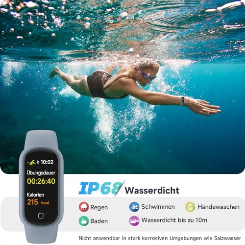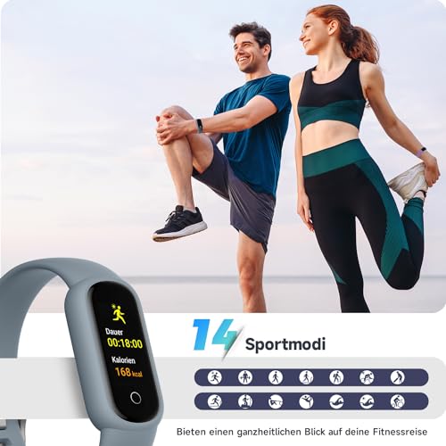 TOOBUR Fitness Tracker Watch z monitorowaniem tętna/poziomem tlenu we krwi/śledzeniem snu, wodoszczelny IP68 monitor aktywności z krokomierzem, zegarek zdrowotny dla kobiet i mężczyzn, kompatybilny z 14 dyscyplinami sportowymi na Androida i iOS.