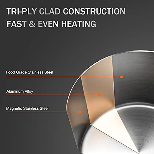 – Trzywarstwowa konstrukcja zapewnia równomierne rozprowadzanie ciepła, co skraca czas gotowania i oszczędza energię.
