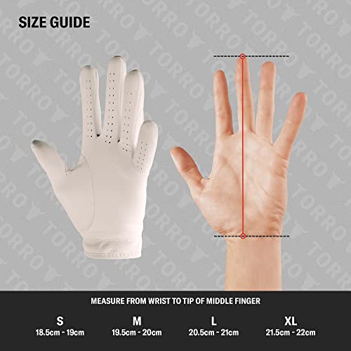 • Styl – zainspirowana stylem najlepszych profesjonalistów w dziedzinie turystyki, rękawice TORRO Premium Cabretta są wykończone w całości białym designie z białym emblematem TORRO dla minimalistycznej, nowoczesnej i luksusowej estetyki.