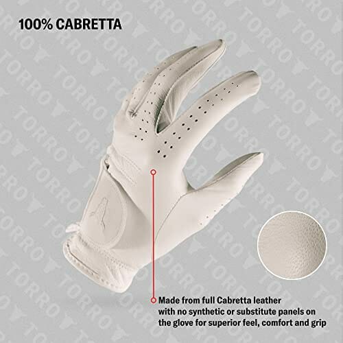 • 100% CABRETTA – Rękawice golfowe TORRO z Wielkiej Brytanii wykonane są z pełnej skóry Cabretta bez paneli syntetycznych lub zamiennych na rękawicy dla doskonałego wyczucia, komfortu i przyczepności.
