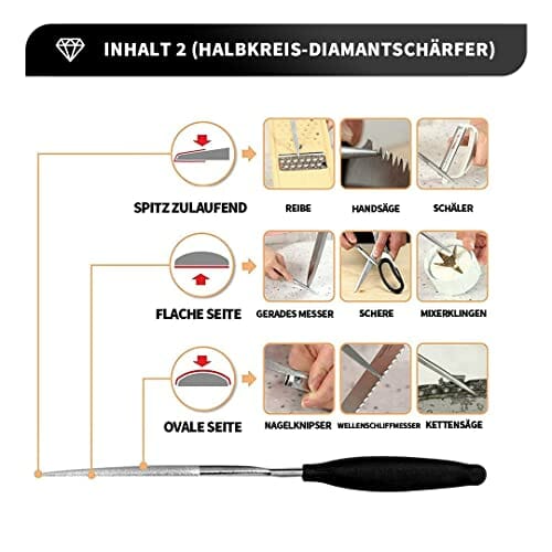 Ostrzałka diamentowa jest wyjątkowo trwała i wytrzymała, dzięki czemu można ją używać do ostrzenia wszystkich rodzajów noży, w tym noży kuchennych, nożyczek i akcesoriów ogrodowych. Ostrzałka jest dwustronna, co oznacza, że można ją używać zarówno do ostrzenia noży o ziarnistości 300, jak i 600.