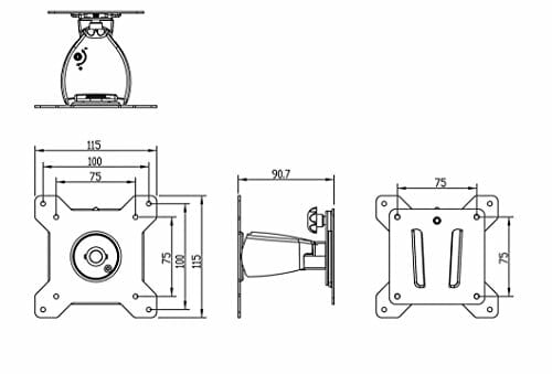 • Bezpieczny uchwyt ścienny: wymiary (szer. x wys. x gł.): 115 x 115 x 90,7 mm – waga: 550 g – rozstaw otworów: 100 x 100 mm / 75 x 75 mm – nośność: maks. 12 kg – odległość od ściany: 90,7 mm – kolor: srebrny